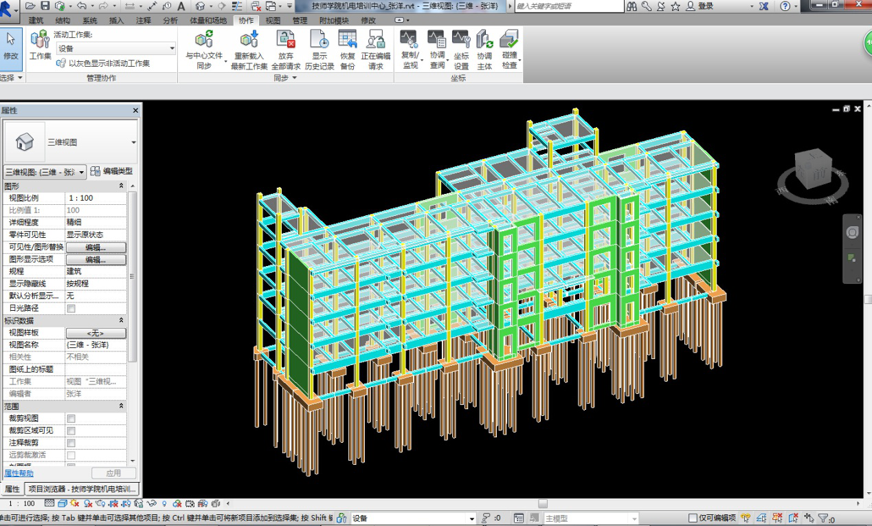 2、 小組成立以來,積極參與各種與BIM相關(guān)的學(xué)習(xí)與活動,整體掌握了Revit設(shè)計軟件,為了使小組的學(xué)習(xí)及研究能真正應(yīng)用到實際工作和工程中,小組各專業(yè)成員利用業(yè)余時間使用Revit完成了對已出施工圖項目的重新設(shè)計。
