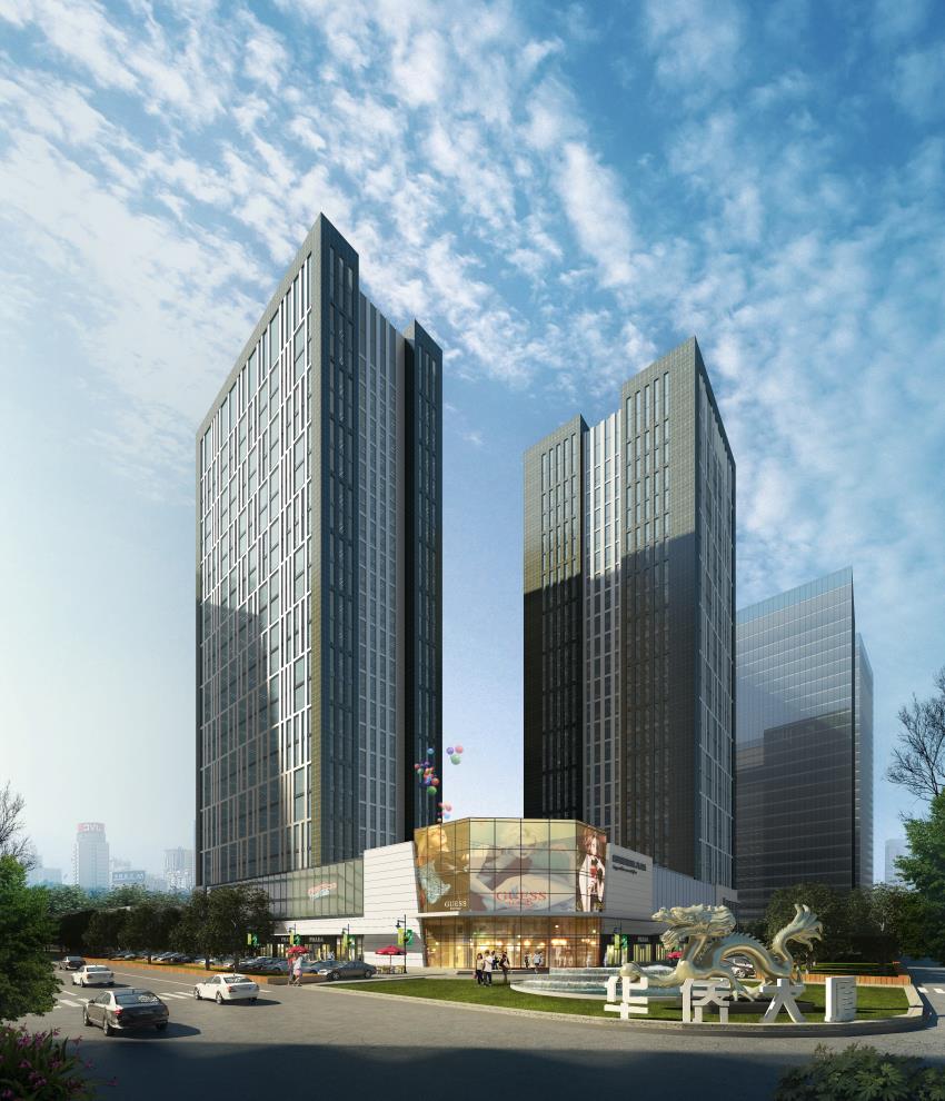 項目簡介:項目位于秦皇島市開發(fā)區(qū),占地面積3000㎡,總建筑面積約65000㎡。整個建筑采用裙房加塔樓的形式,主樓顏色整體為黑色,給人一種穩(wěn)重大氣之勢。
